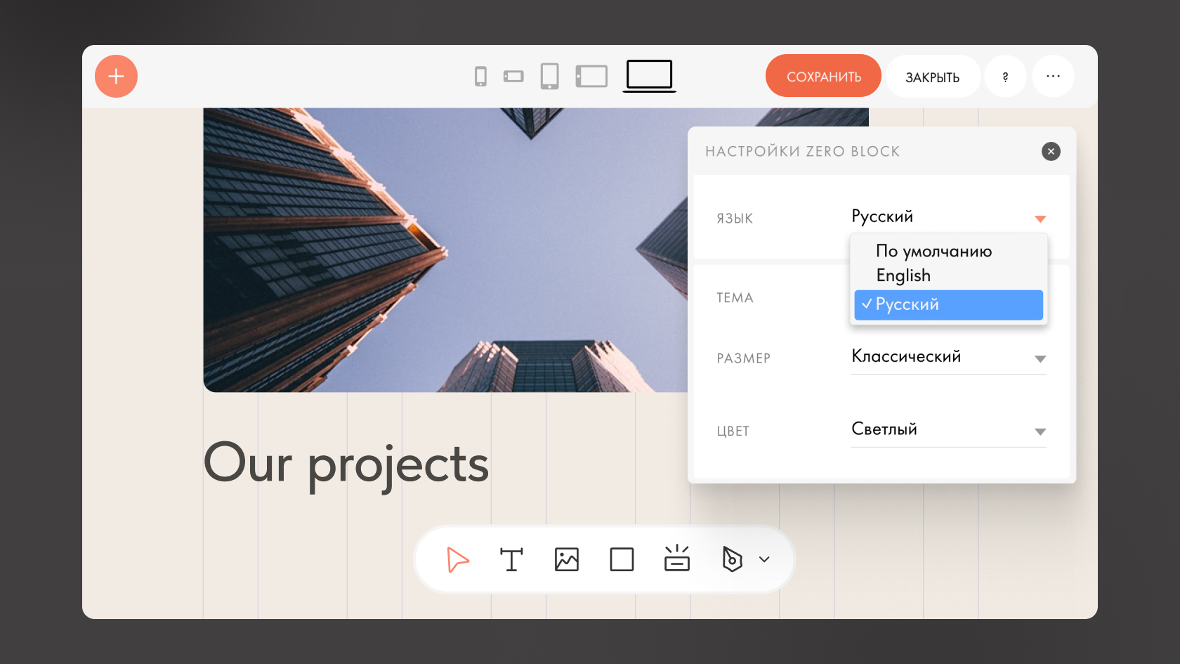 Теперь можно гибко настраивать вход в Личный кабинет — через SMS или по почте. Выбирайте, что удобнее для вас и ваших клиентов. | | | | Не забыли и про Zero Block ⚡: он стал стабильнее, а в интерфейсе появился русский язык, удобная панель инструментов, автовысота для артборда и ещё много других полезных функций для автолейаутов, настроек адаптивов, кнопок и других элементов, которые помогают ускорить вёрстку. | | | | Раздел Заявок обновился и стал удобнее как на десктопе, так и с мобильных устройств. Таблица выглядит нагляднее, её можно настроить под себя,