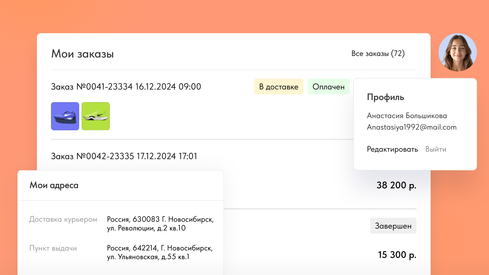 Если потребуется обновить оформление, просто измените параметры стиля — изменения на сайте применятся автоматически. | | | | Для интернет-магазинов появился Личный кабинет. С его помощью владельцам магазинов проще управлять заказами, а покупатели могут видеть историю заказов, их статус, управлять сохранёнными адресами и повторять покупки в один клик.